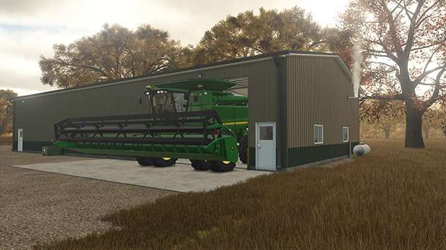 This mod is a shop building based on a real-life structure. It’s perfect for mid- to small-sized American farms and will fit nearly all equipment—even the largest combines, as long as the hopper isn’t too big.