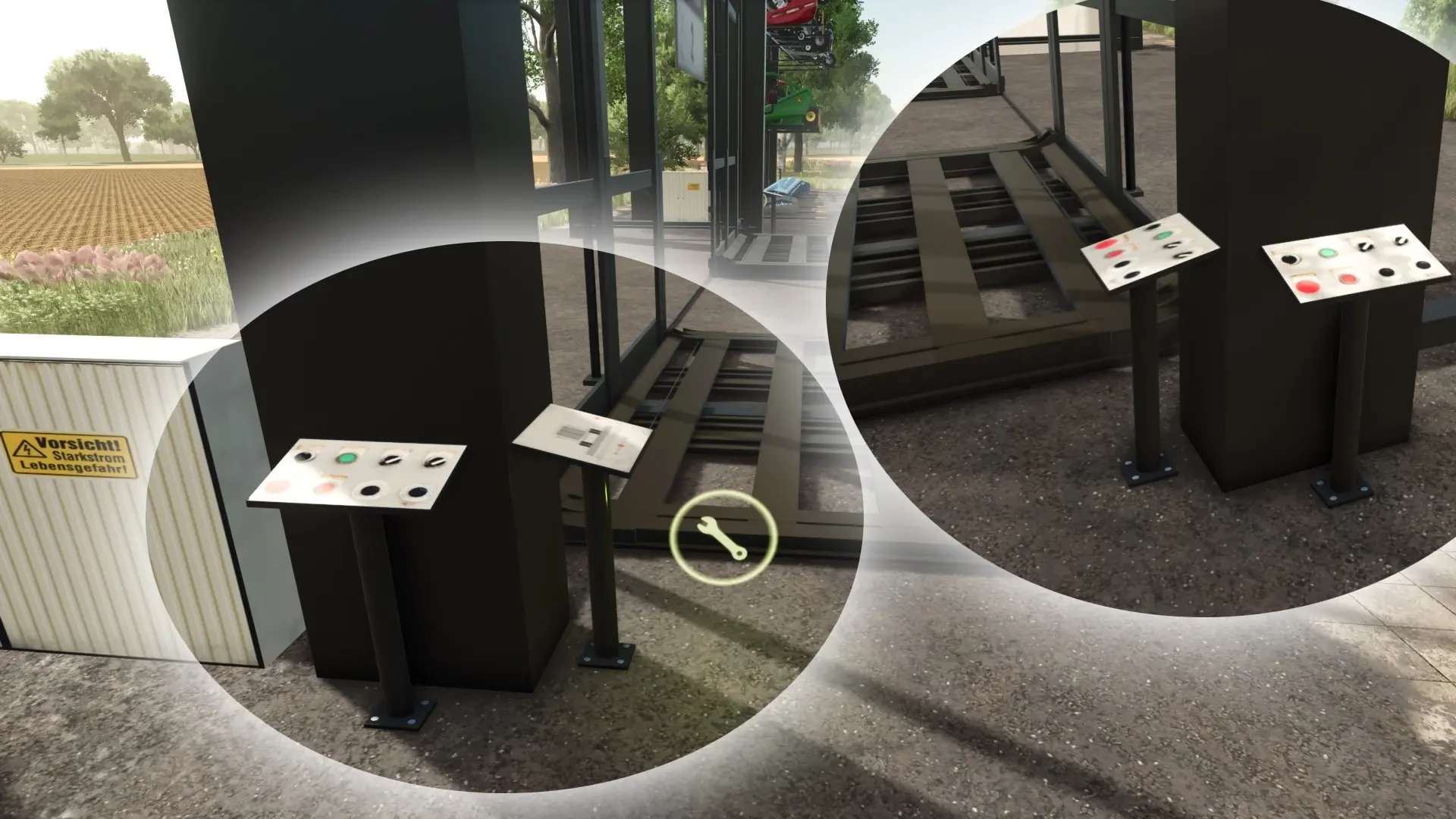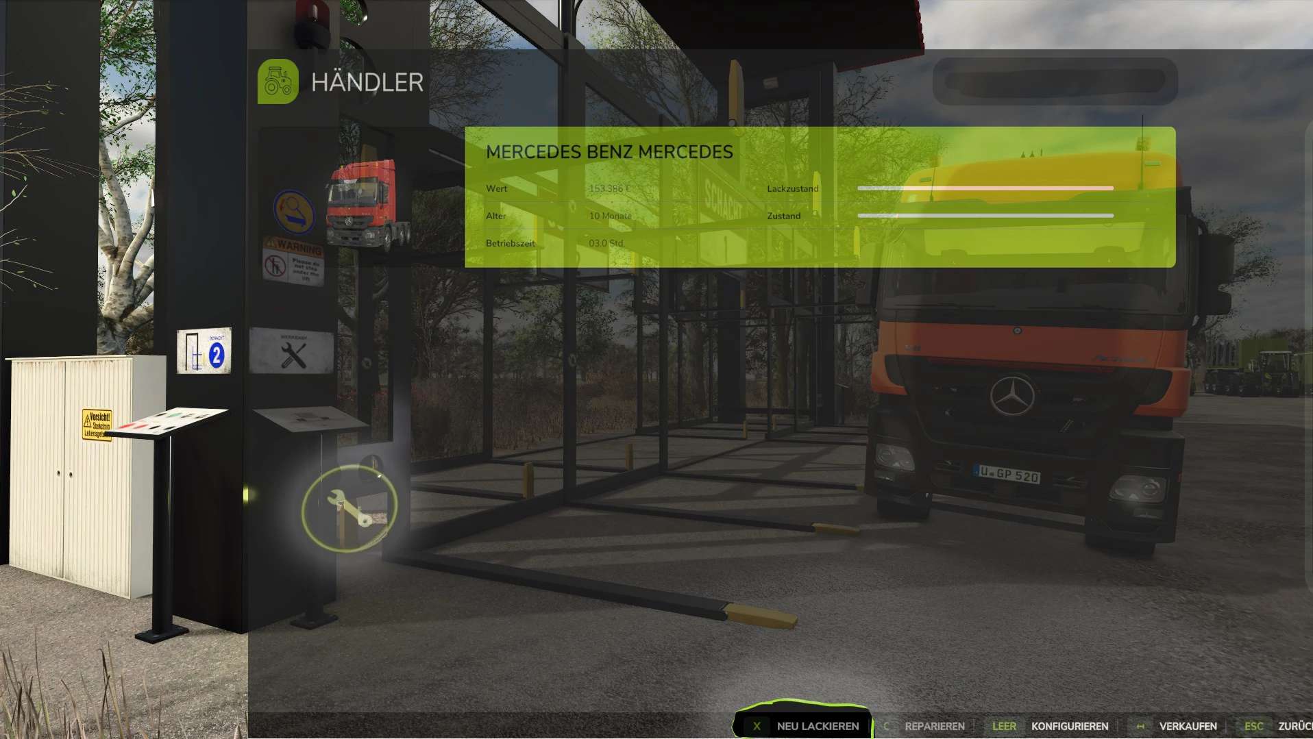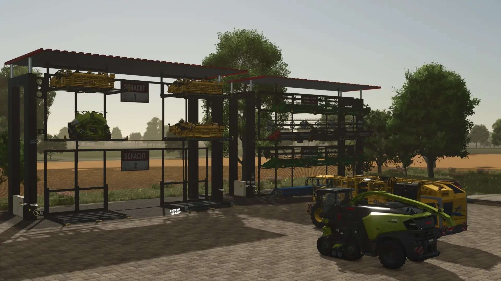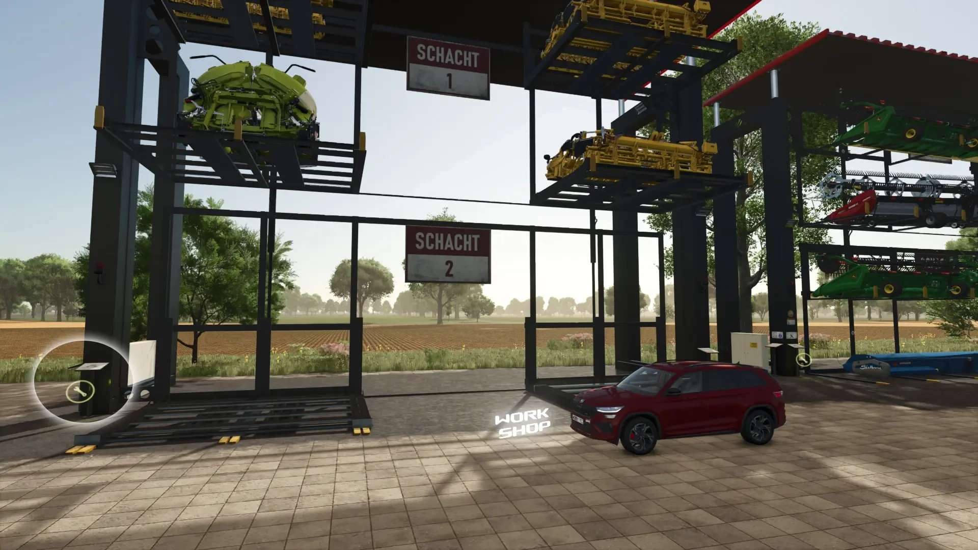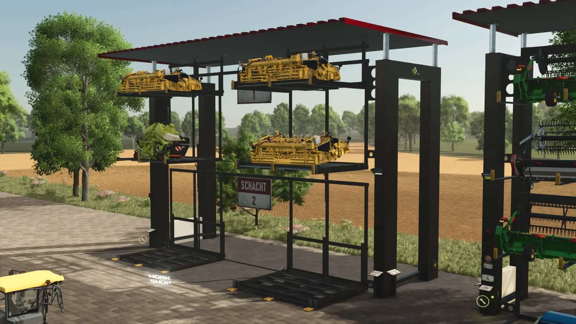 Built-in Workshop for repairing and configuring stored headers and vehicles parked in front of the storage!