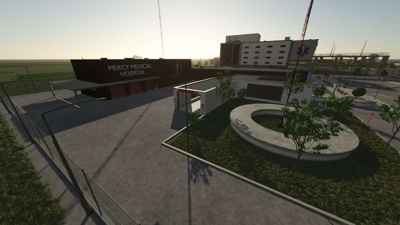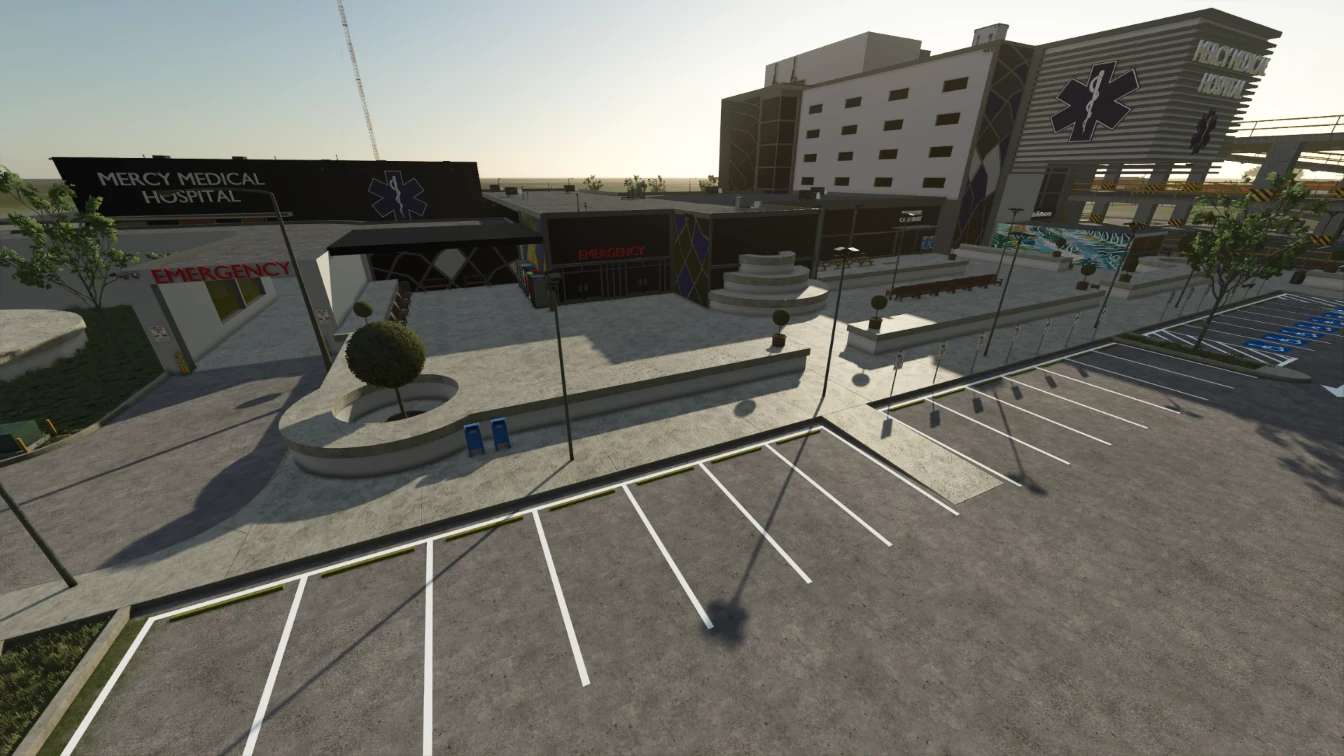 This is a Hospital used for RP and decoration. There is a section in the back left designated for EMS. The garages can be opened up and the lights on the inside can be triggered on. There is also a functional parking garage on the right side of the property with ample parking.