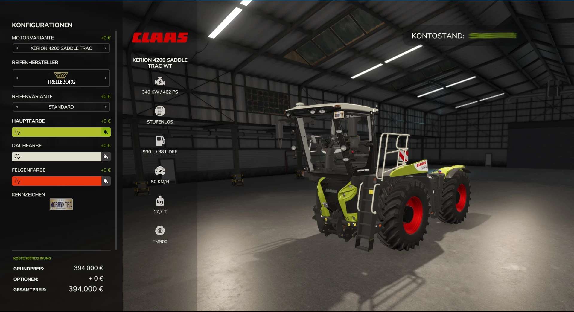 Color selection adapted (Claas Grün Metallic as the only default color in metallic)