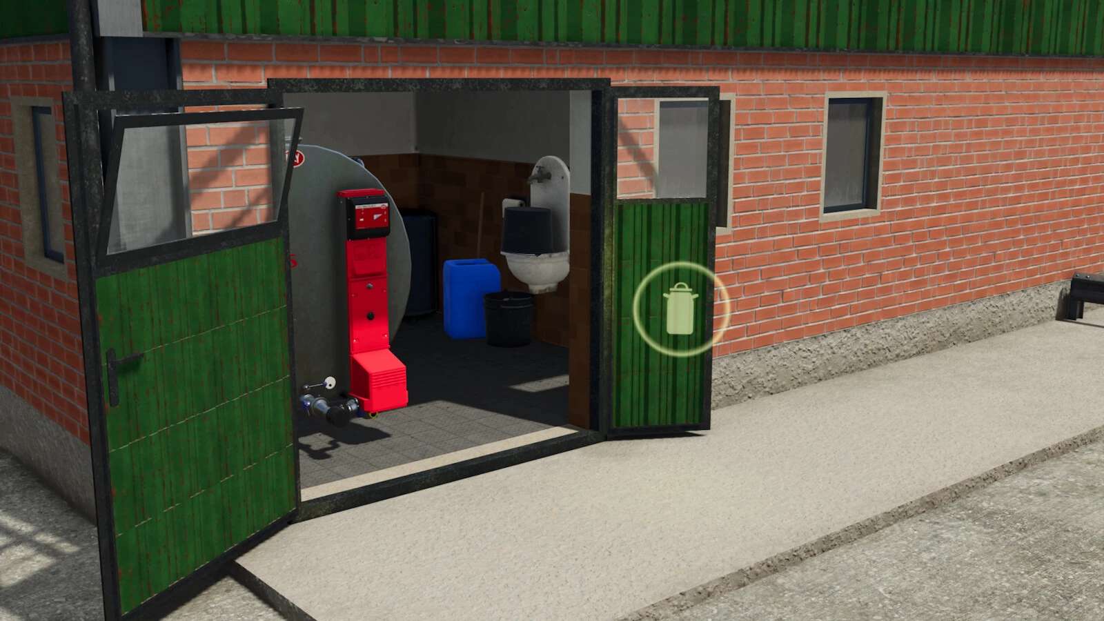 Note: Due to the detailed milking parlor and the associated pit, it may be necessary to adjust the ground in front of the barn slightly after placement because of the grid!