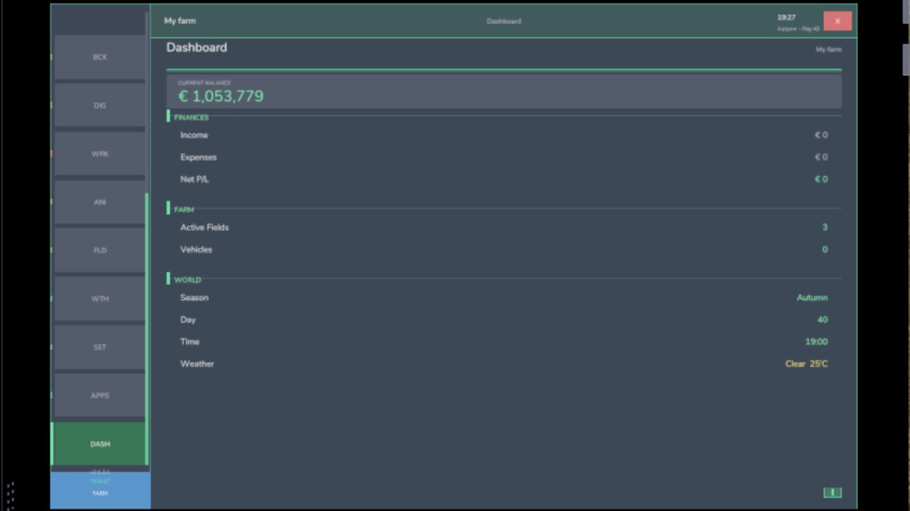 Originally inspired by a tablet mod for FS17, built from scratch for FS22 and now fully converted and rewritten for FS25. The goal is simple: useful farm info at a glance, without getting in the way of gameplay.