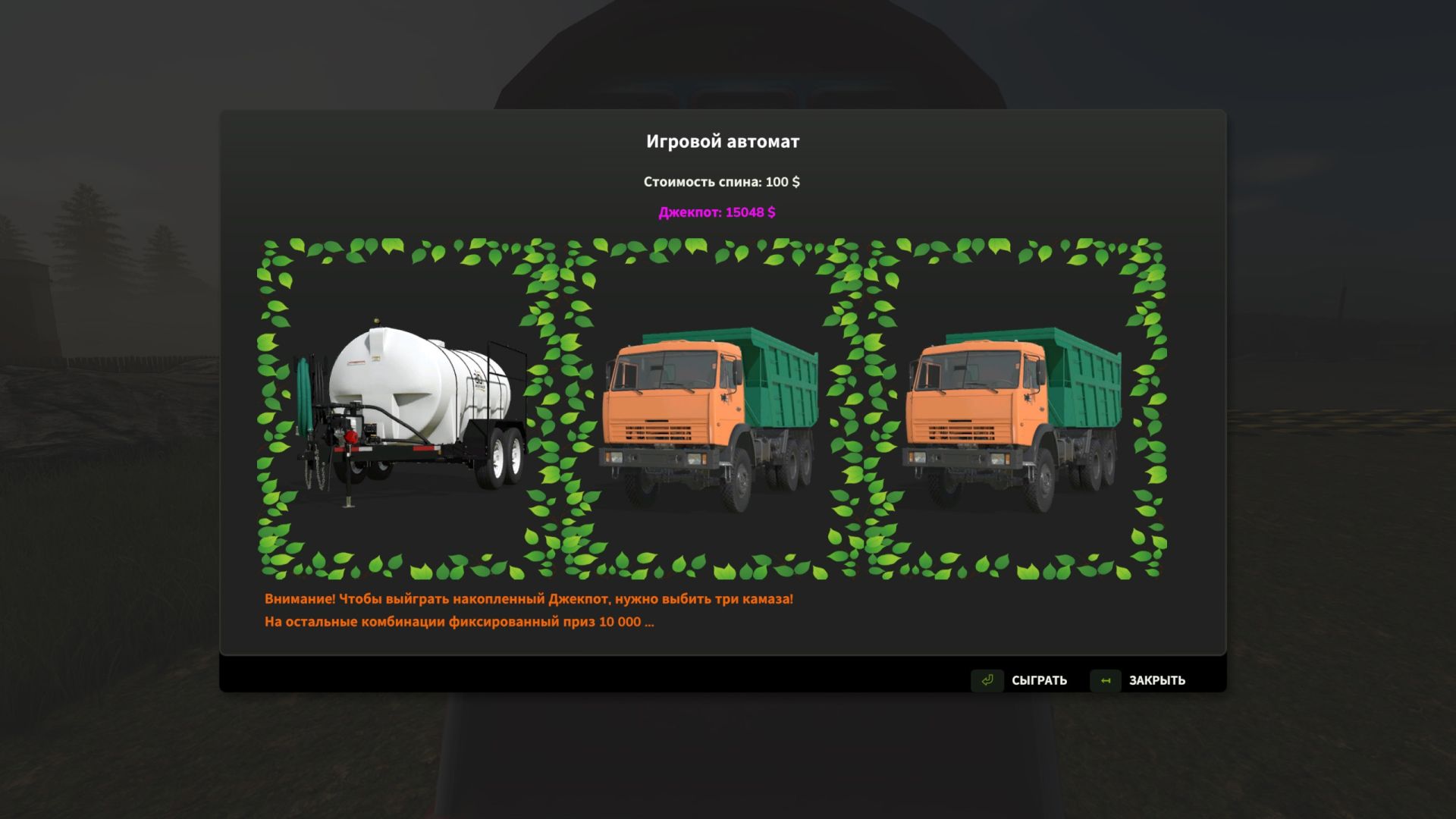 – every 3 identical characters give $ 10,000 (except KamAZ)