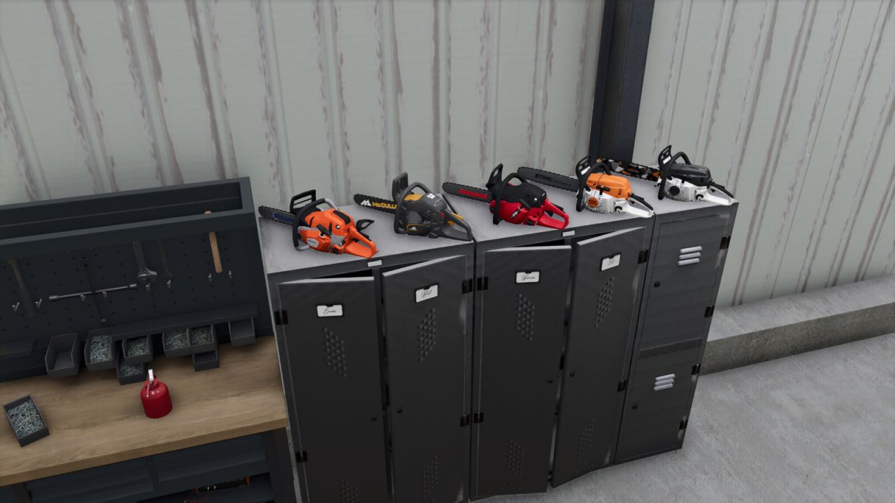 Up to 5 chainsaws can be stored on the lockers.
