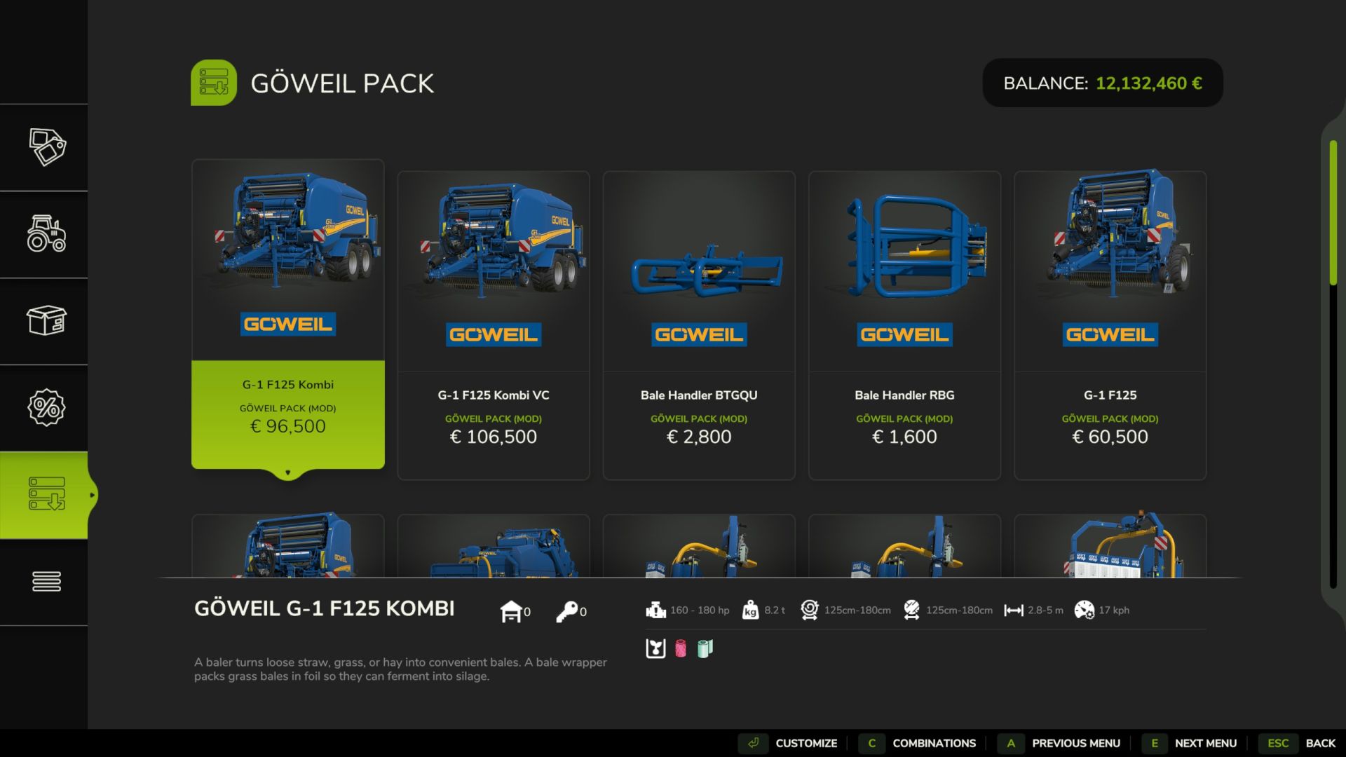 Göweil G-1 F125 – Compact entry-level round baler, available in standard and VC versions (with pre-compression chamber).