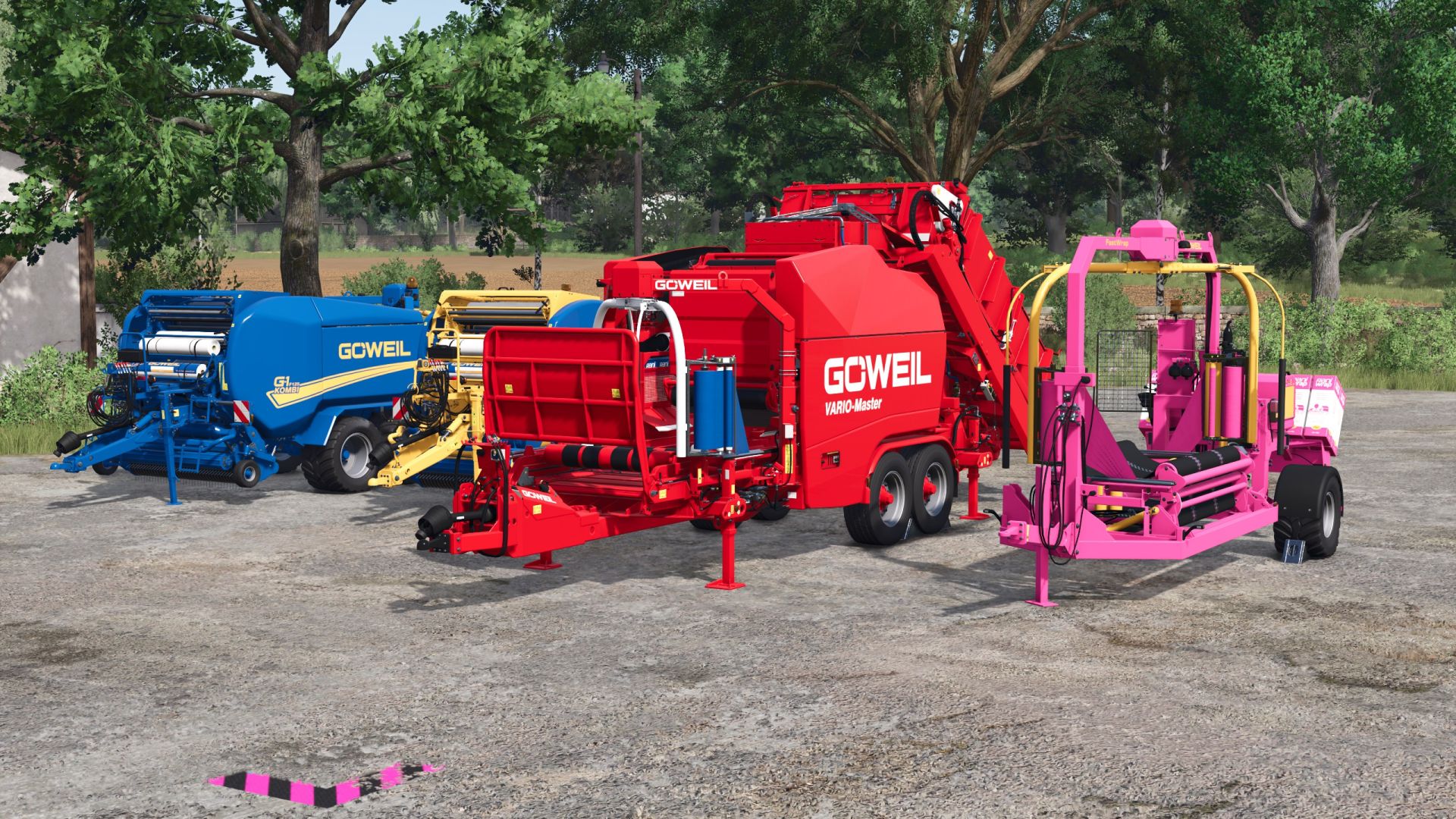 Göweil-Pack with presses, wrappers, front-loading tools and colored wrapping film
