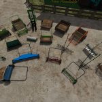 A package of several DIY hand pushable tools for smaller field works, from cultivating to harvesting.
