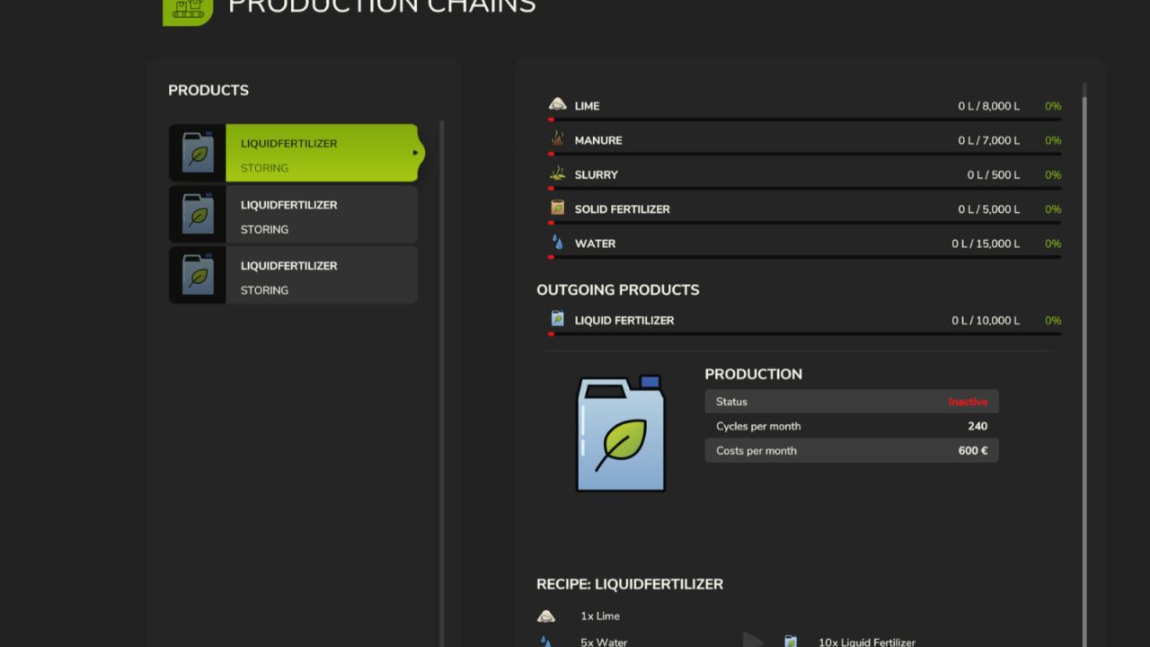 With the mod, liquid fertilizer can be produced from mineral fertilizer, manure, and slurry, as well as water.