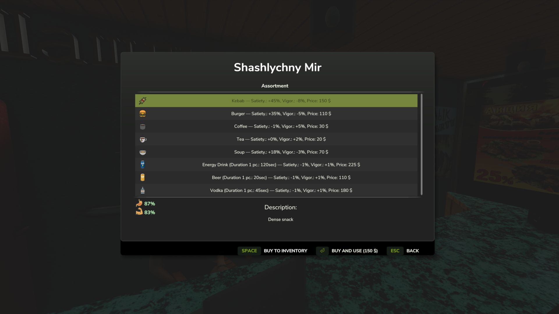 Now the player needs to eat and rest to stay in shape.