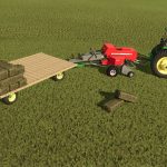 A small square baler with an ancestry going back decades, the Massey Ferguson 1840 traces its roots back to the inline baler design pioneered by Hesston. This baler is a revision of the basegame Massey 1840 that incluedes a number of additional features, including the ability to pull a wagon with the rear hitch.
