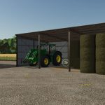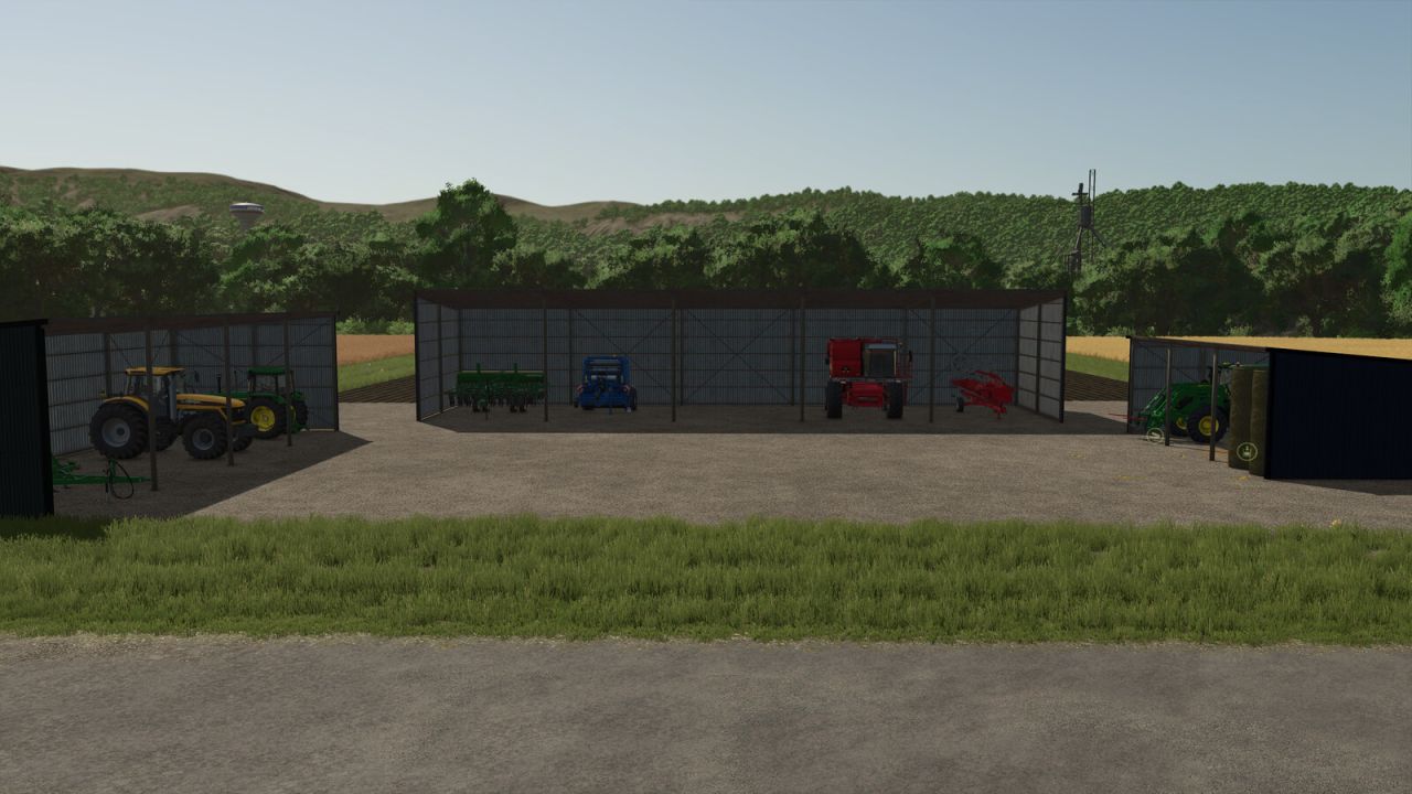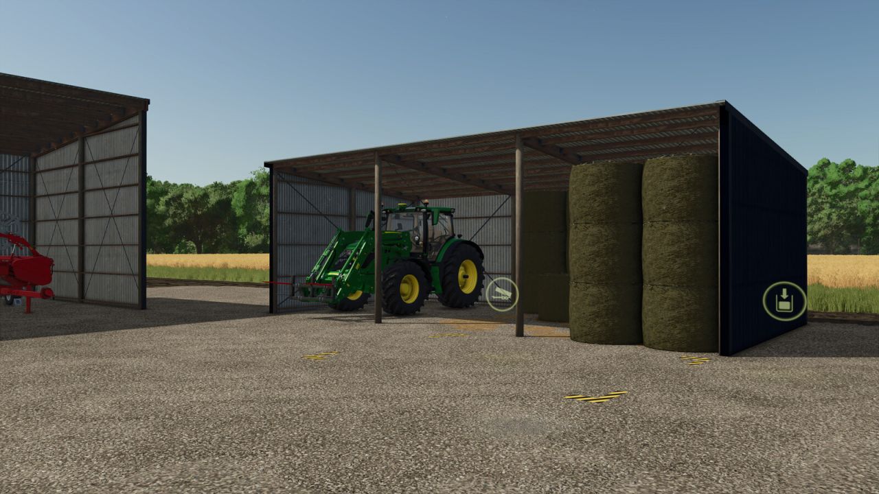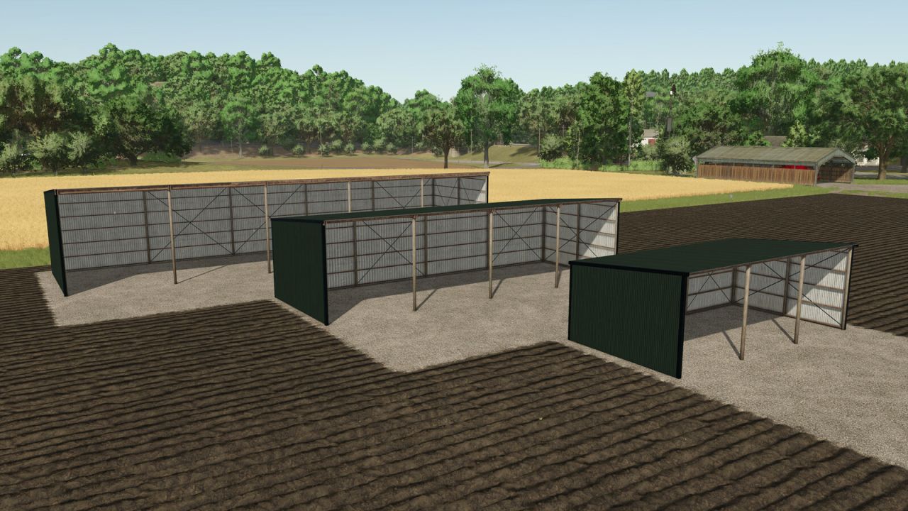 Included is an object storage option for bale and pallet storage, found under the silo category. Each shed uses the 2 bays on the right side for storage and is identifiable with the straw on the ground.