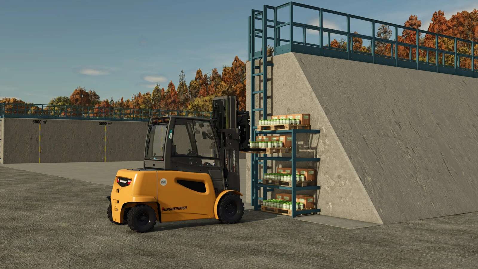 – Shelves for silage additive pallets.