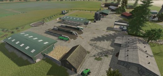 The map brings its own space marked for the factories, 3 points of sale, 26 field of various sizes, also has a farm space with farmhouse silos and sheds.