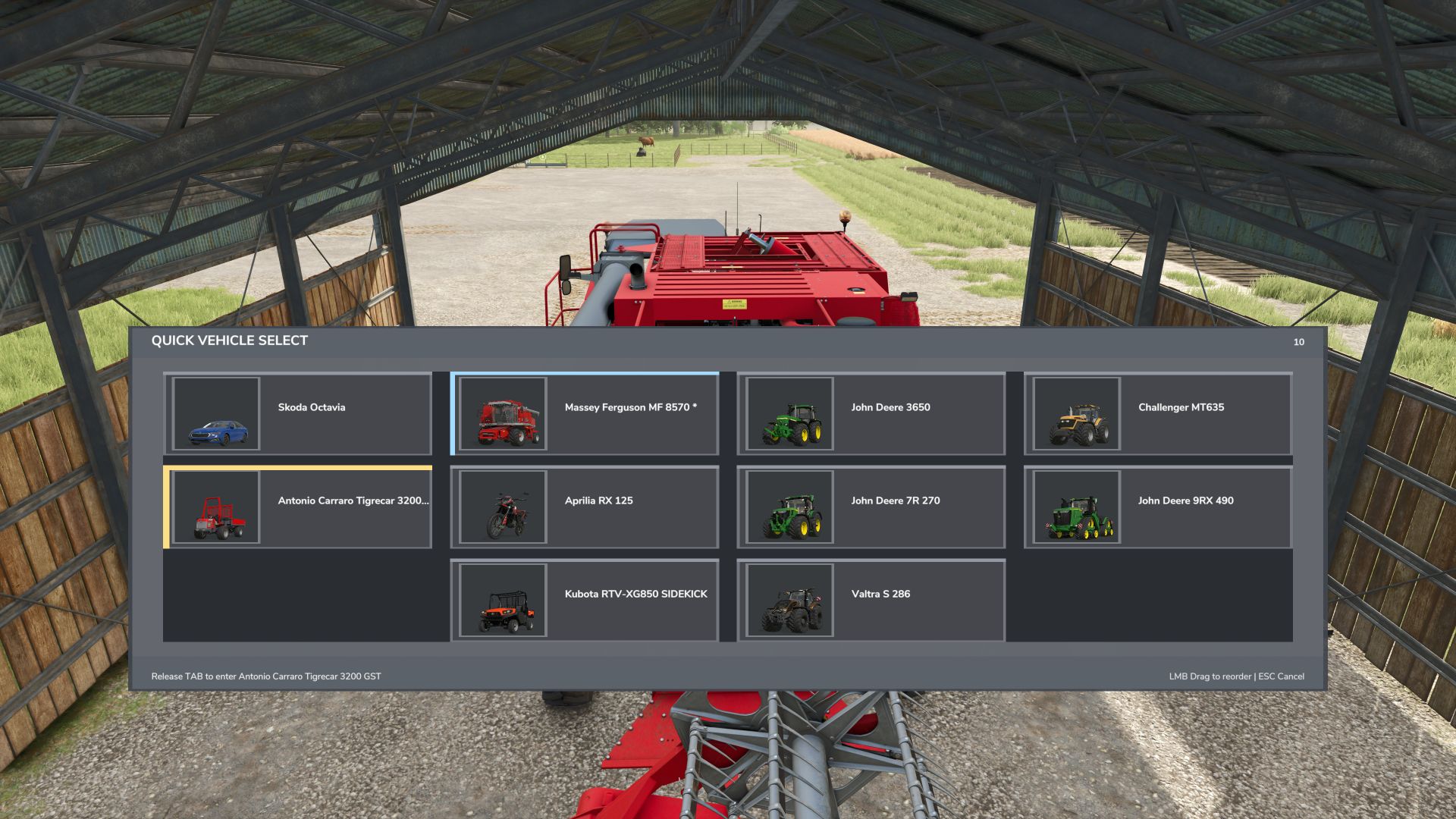 Hold TAB to open vehicle selector