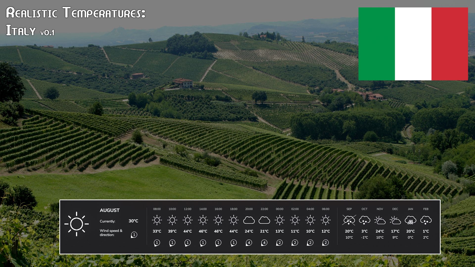 For example, if you want to start a game with a Italian temperate, you install the Italy file and then start your game with the map. Keep in mind if you don’t have a weather monitor (as in the screenshot) your forecasts will not be completely accurate. For example, the scratched out snow is because it is definitely wrong as it isn’t possible. The other two are unlikely.
