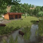 – Several pastures for cows, horses, sheep, and Highland cattle + water buffalo pasture