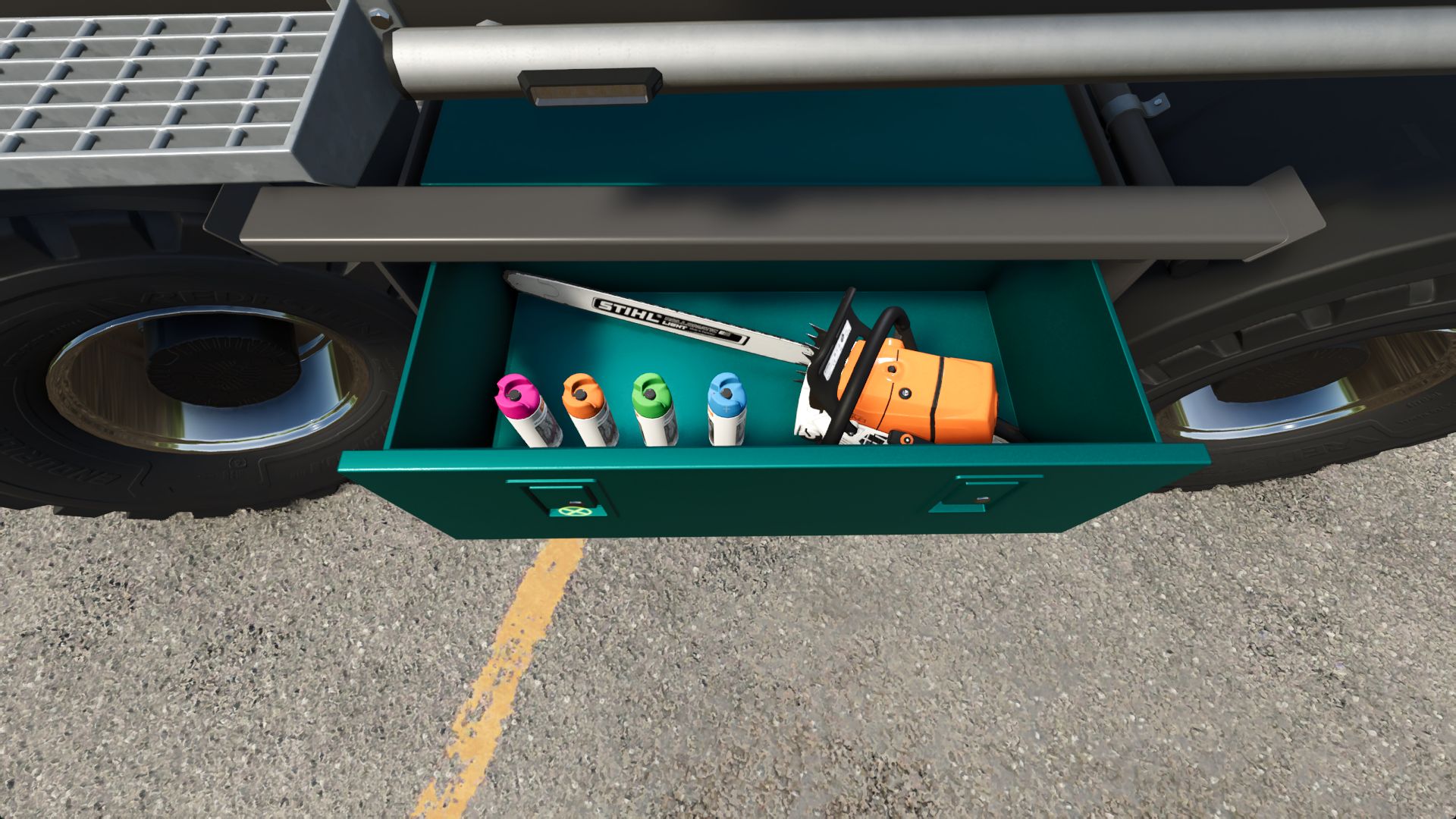 Chainsaw holder and cleaning spray installed
